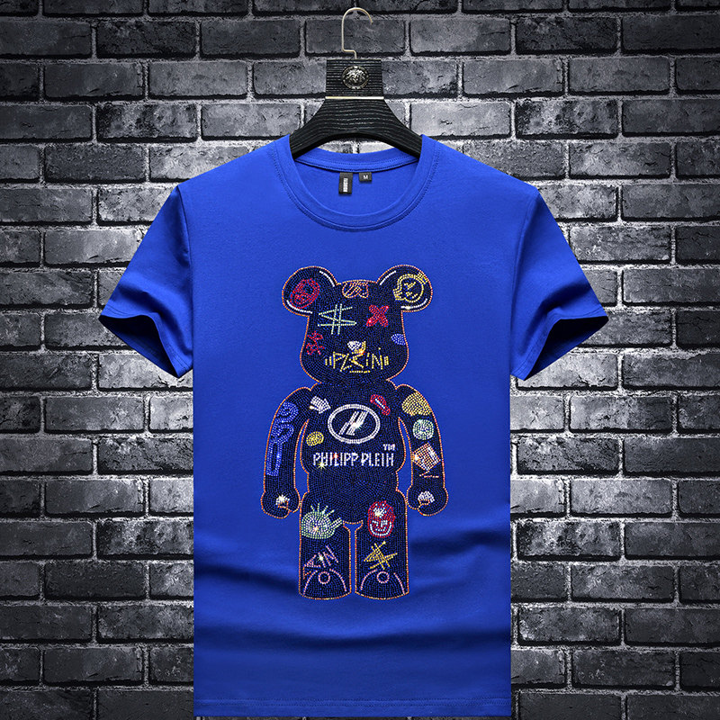 2021 New Summer Men's Drilling Short Sleeve T - shirt Men Trend Youth Self - sleeved Card Card