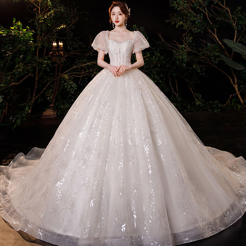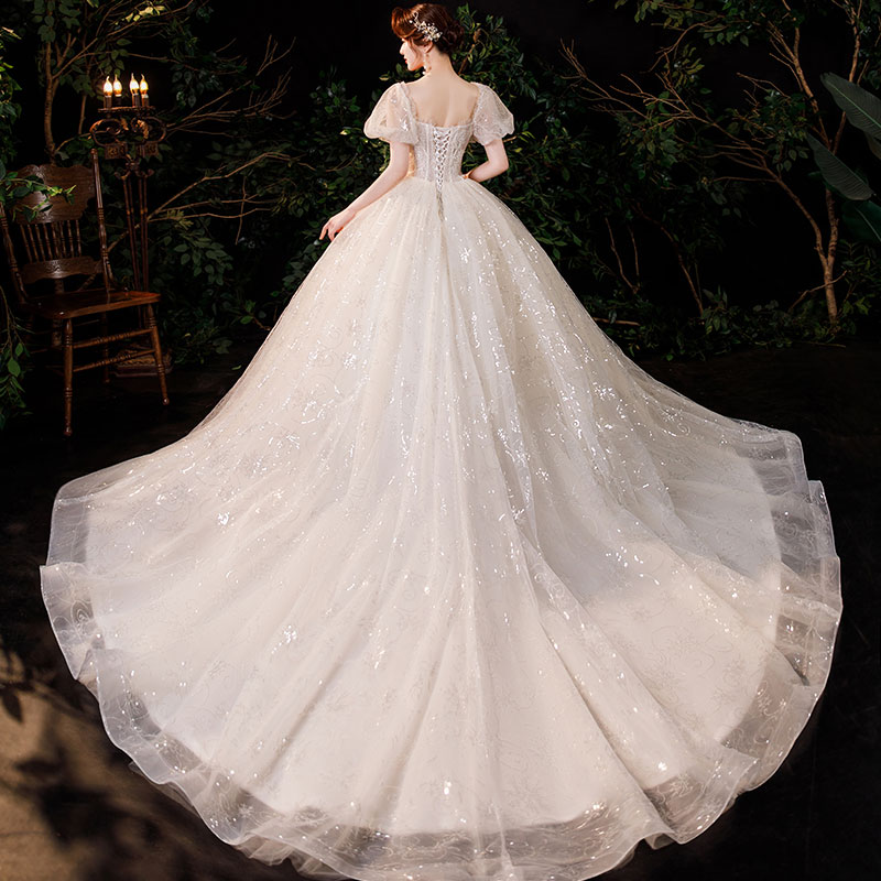 French light main wedding dress 2021 new bride temperament tail simple atmosphere small wedding dress 2020