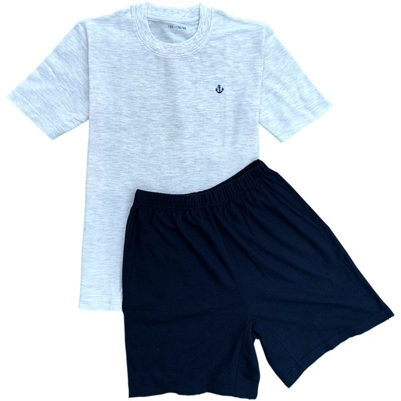 Submarine long voyage antibacterial fitness training suit summer short-sleeved shorts loose cotton hemp breathable T-shirt men