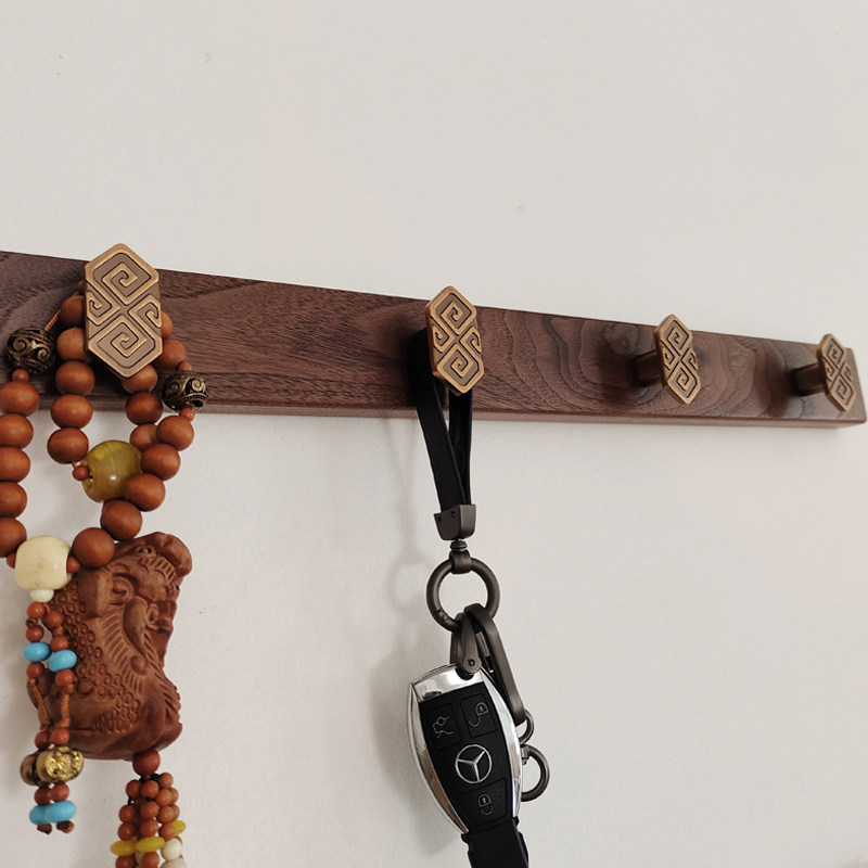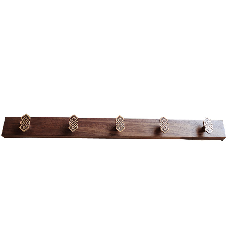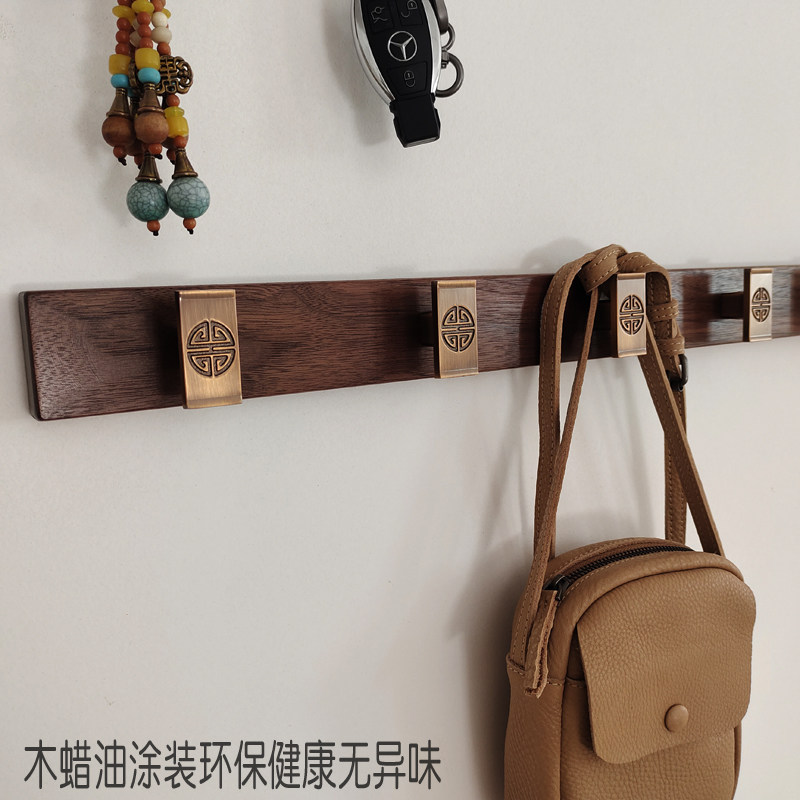 New Chinese-style clothes hook entry porch coat hook black walnut wall solid wood creative nail-free glue wall-mounted hanger
