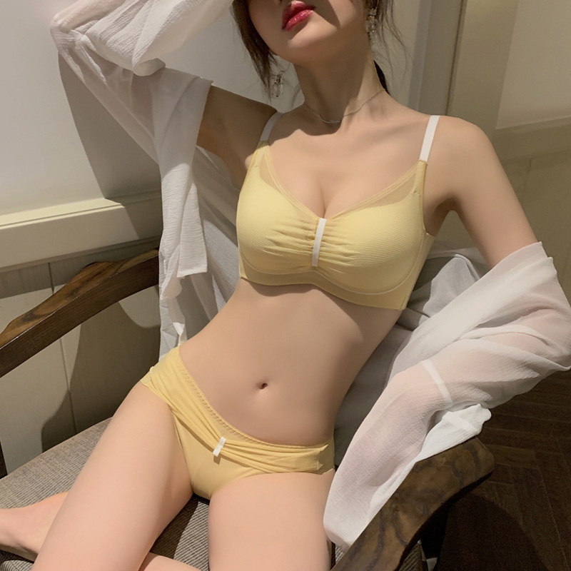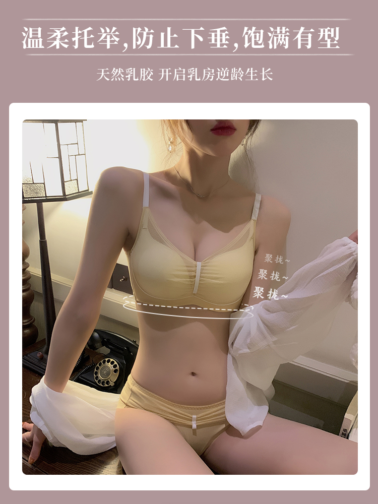 Japanese latex underwear women's small breasts gathered and retracted breast adjustment type thick bra flat chest no underwear set