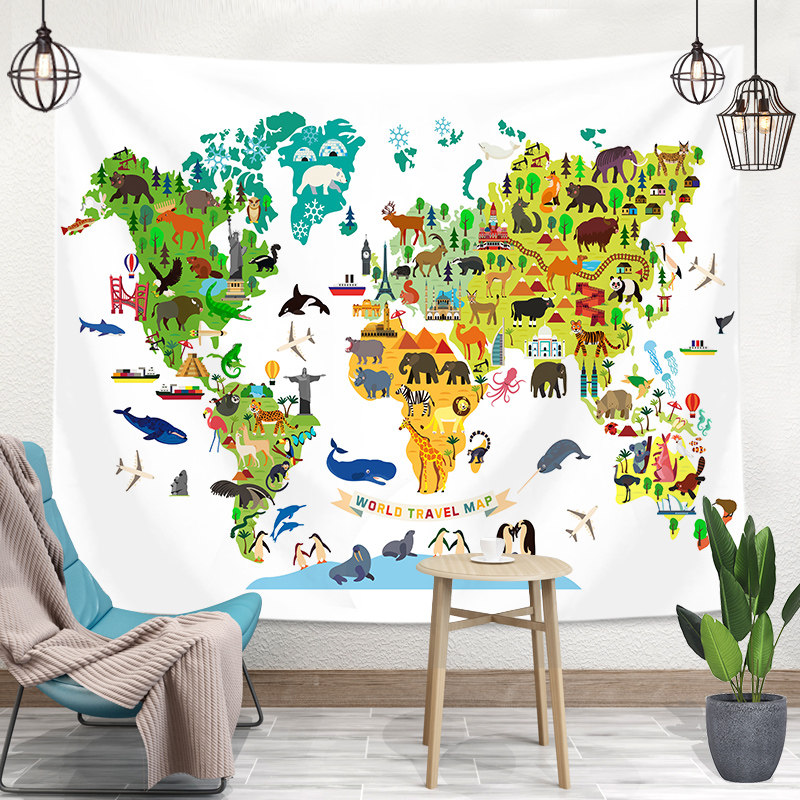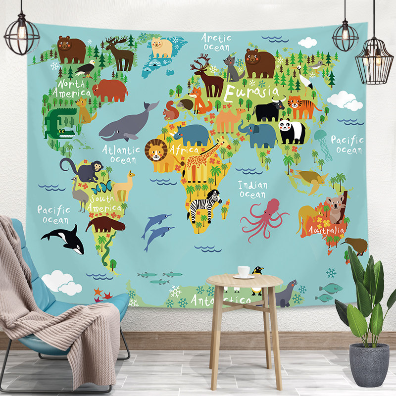 Cartoon Animal Map Hanging Cloth Wall Decoration Tapestry Background Cloth Bedside Room Dormitory Arrangement Shelter Free of punch