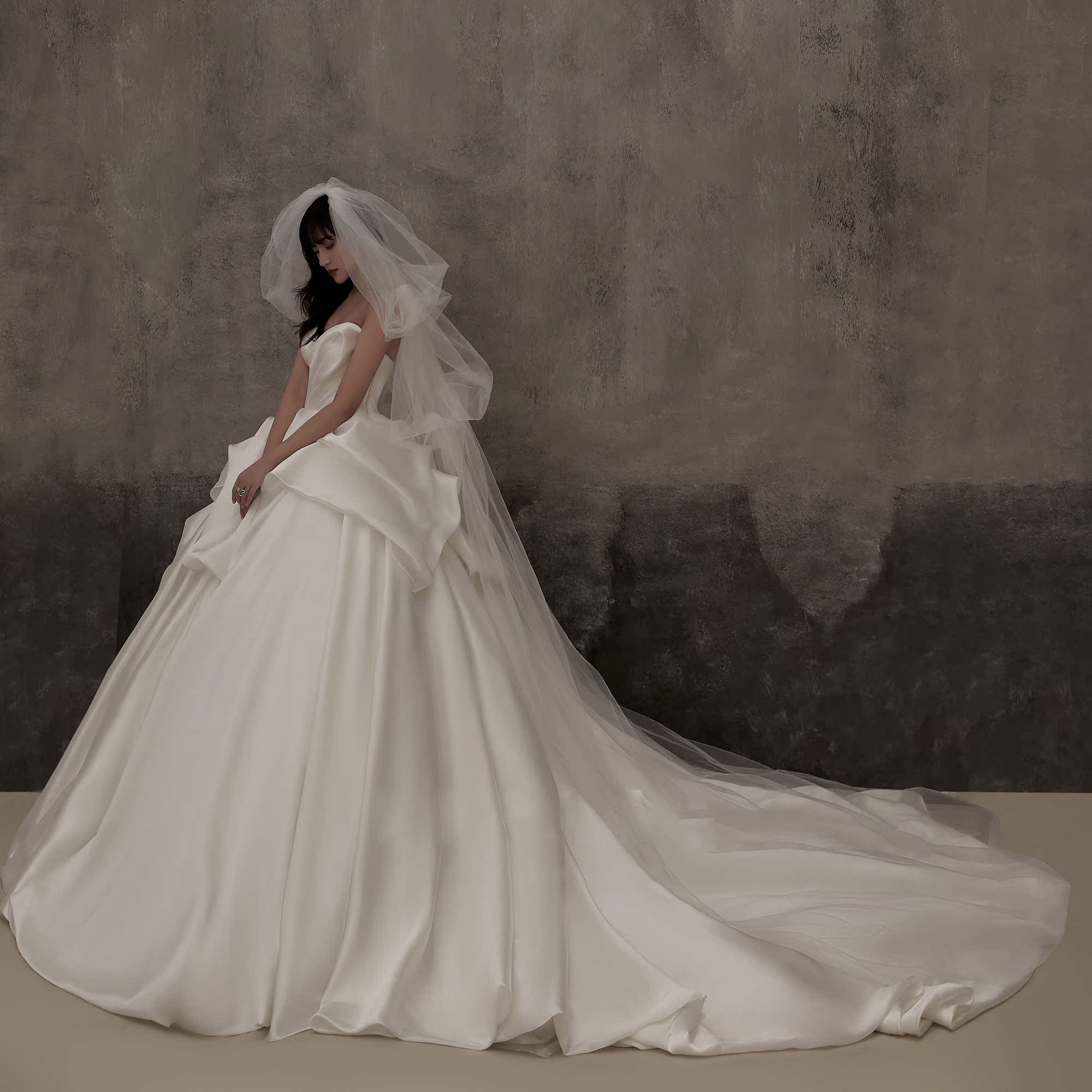 Satin wedding dress 2022 new bride French tube top fashion simple irregular court tutu skirt