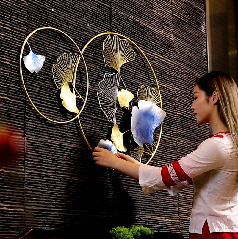New Chinese Iron Art Living Room Background Wall Decoration Xuanguan Sofa Corridor Aisle Modern Light Lavish Wall Metal Wall Decoration