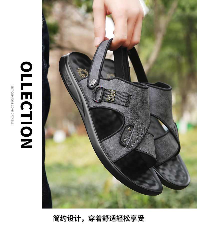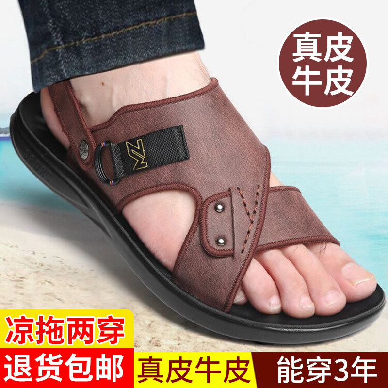 Men's sandals are leather soft soles and slippers outside the 2022 summer new anti - slip dual - use beach shoes
