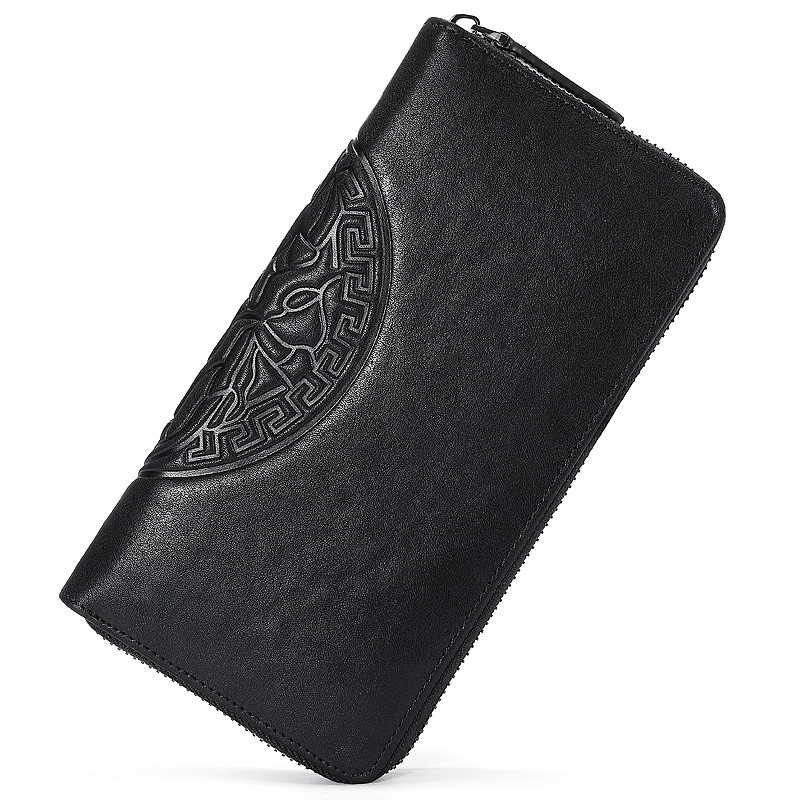 2022 new leather clip men's long version genuine leather handbag boomer soft leather clip hand grab bag with calf leather bracelet small hand grip bag