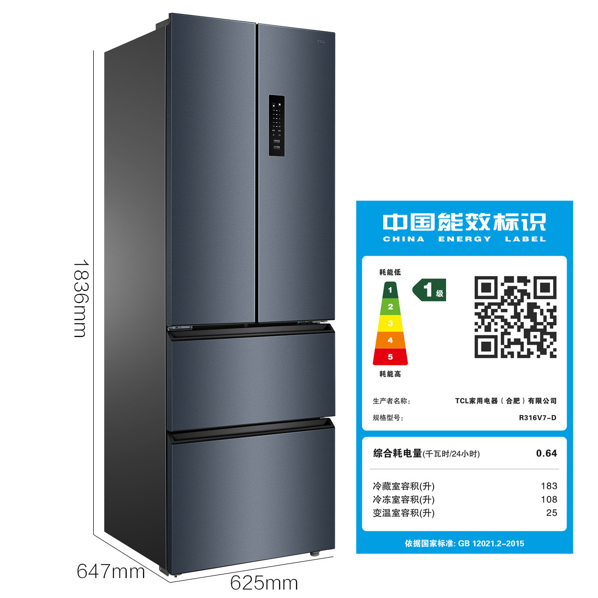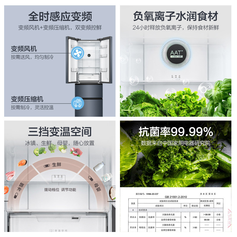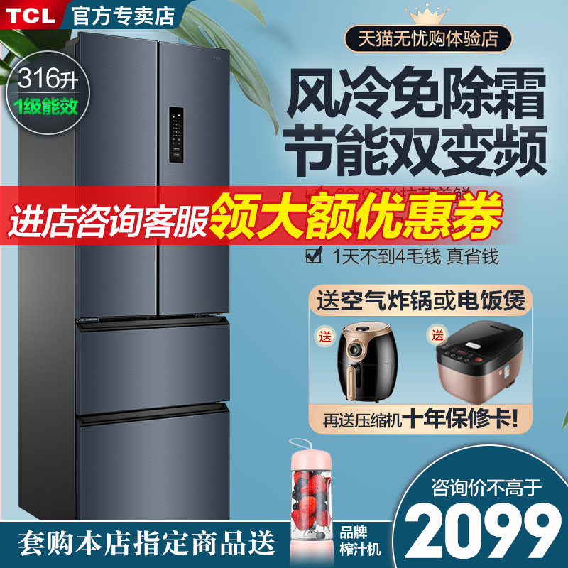 TCL316 Liter Four Doors Method Type Frequency Conversion Air-cooled Frost-free Energy Saving Silent Large Capacity Domestic Refrigerator First-class Energy Efficiency