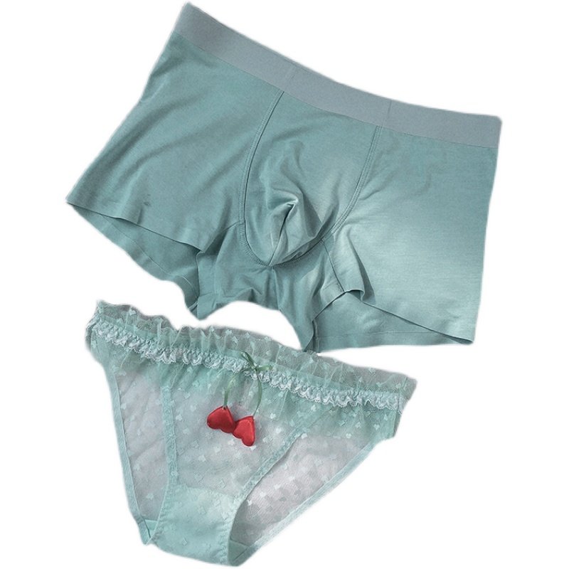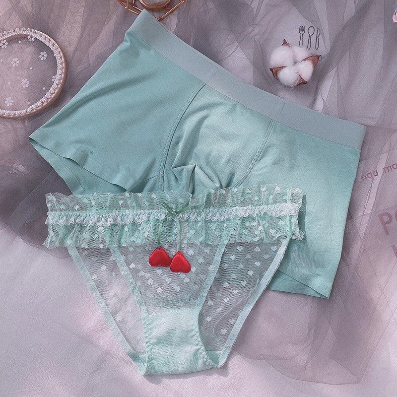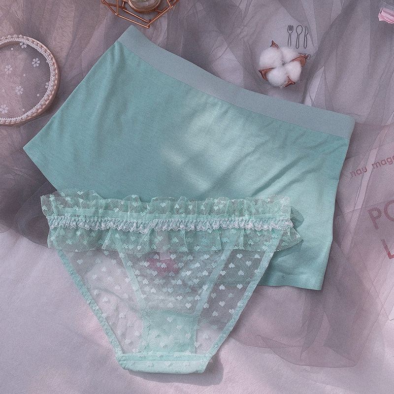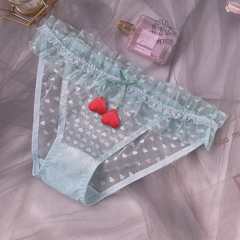 Day Ensemble Summer Cute Teenage Girl Hollowed-out Sexy Dots Couple Briefs Sweet Beauty Lace Pants Mid-Waist Flat Corner Briefs-Taobao