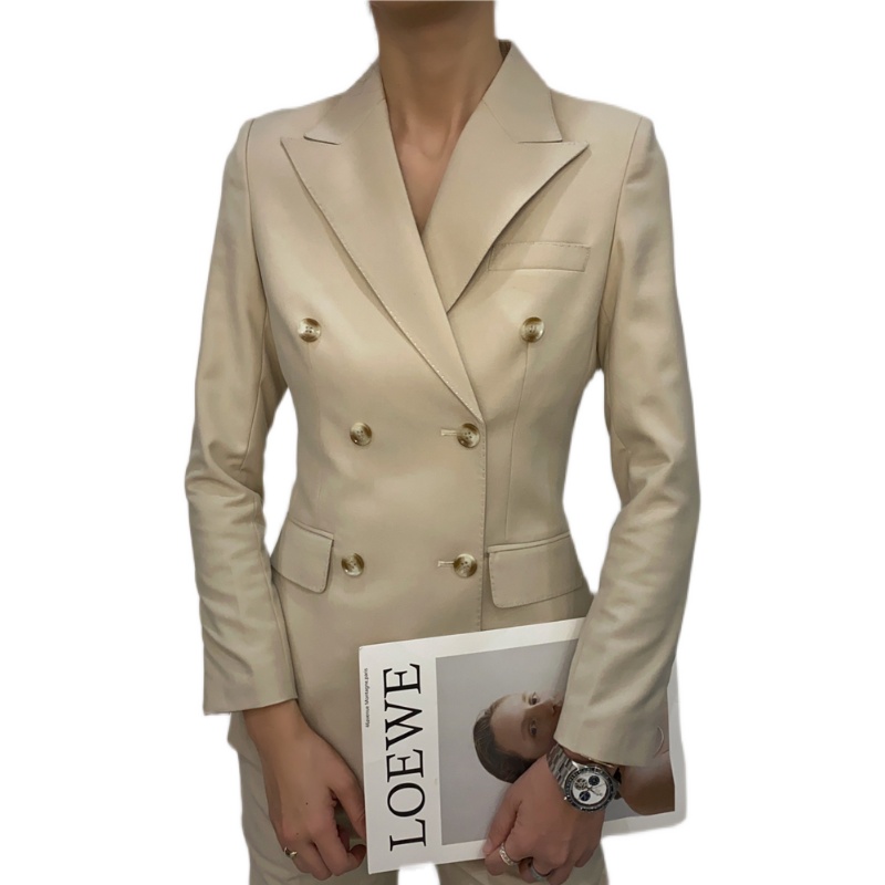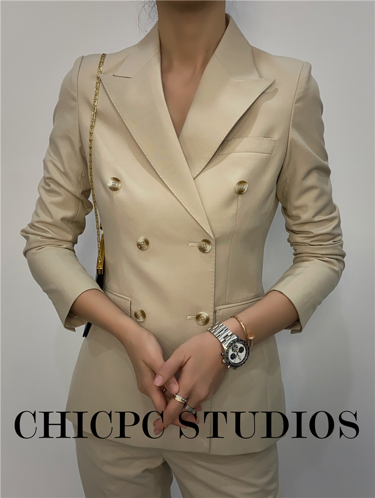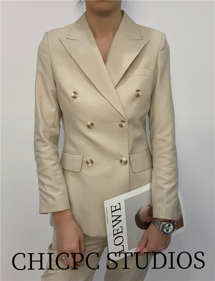 Beige spring and summer work clothes women's double-breasted suit set decoration body temperament high-end sense niche fried street leisure net red