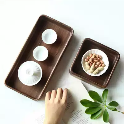 Square dried fruit plate creative modern living room Japanese solid wood snack plate tea wooden small tray multi-layer grid