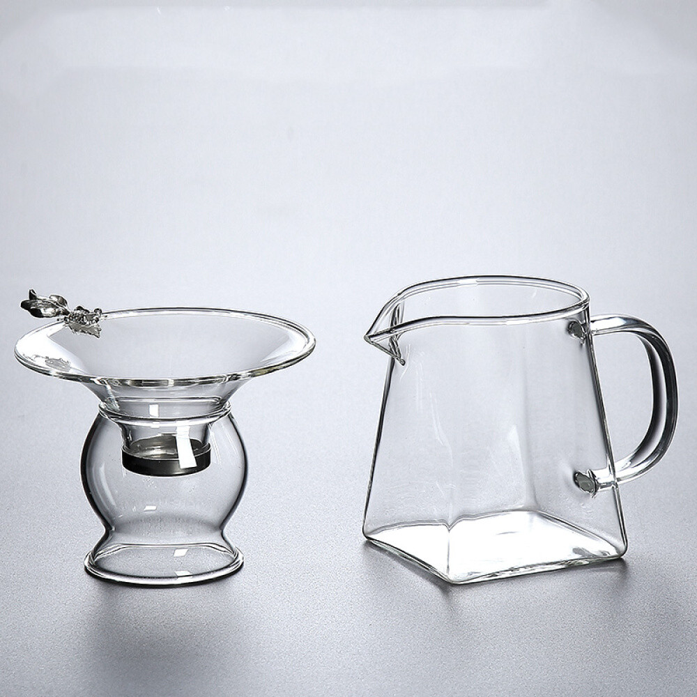 High temperature resistant glass large tea leak transparent filter Tea machine Net tea strainer filter Gongfu tea fitting suit