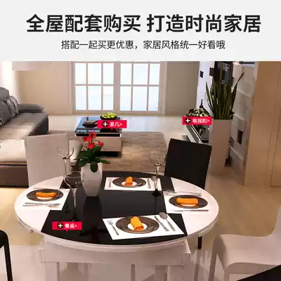 Modern simple telescopic folding dining table and chair combination small apartment dining table household tempered glass dining table variable round table