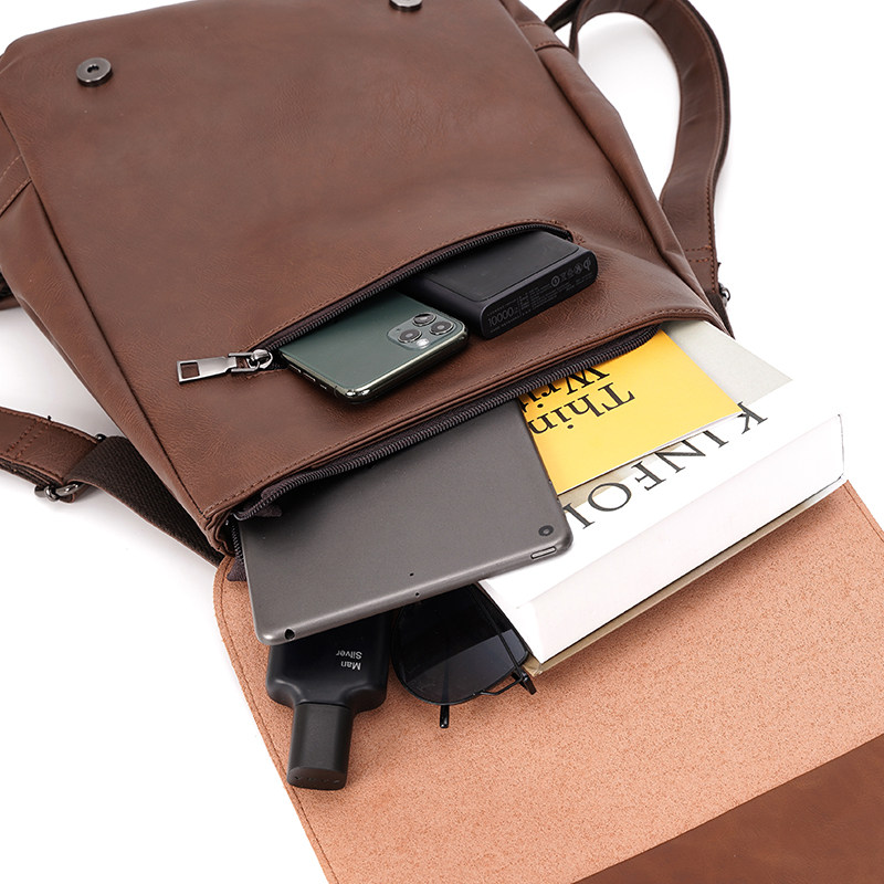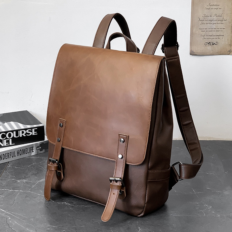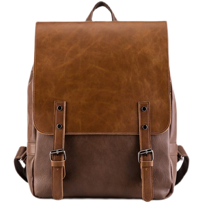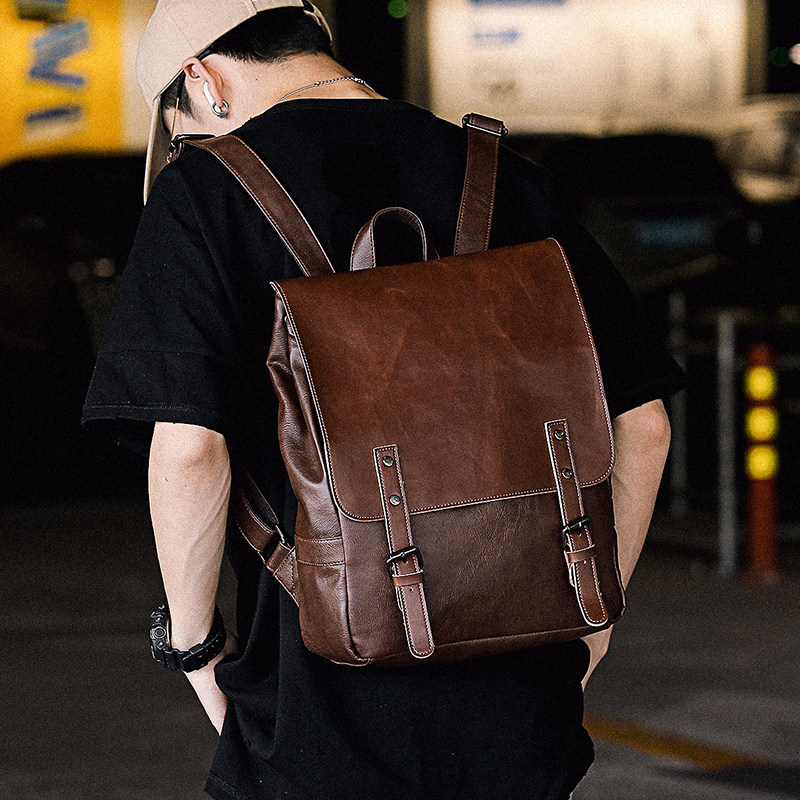 European station men's leather backpack street college student schoolbag retro horse leather large-capacity leisure travel bag