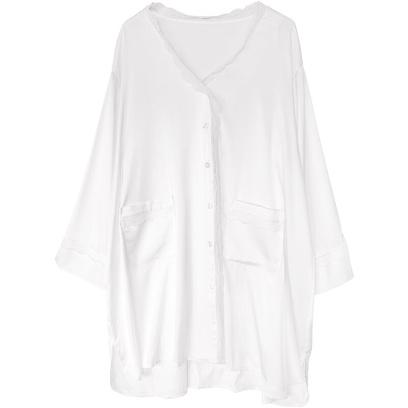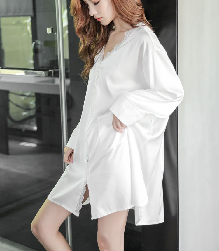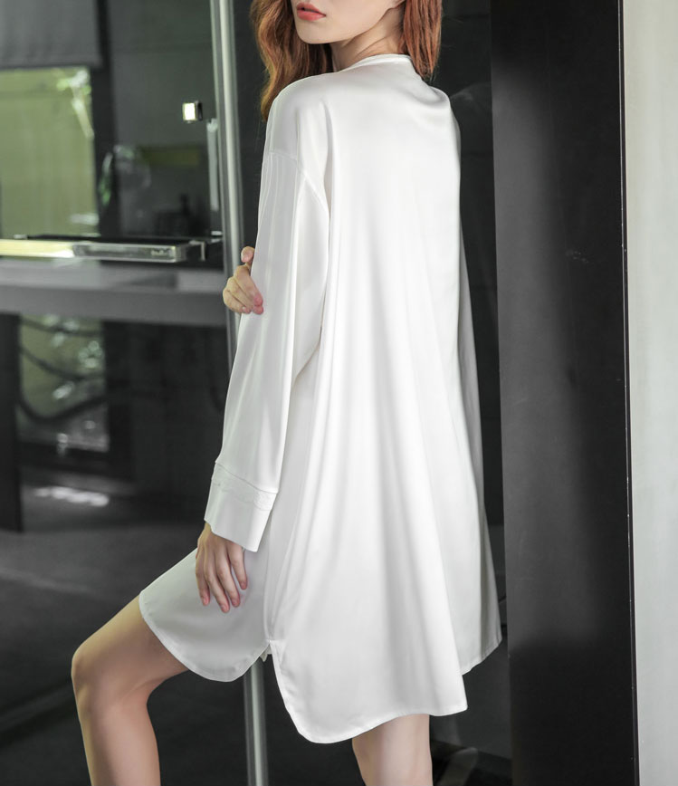 White ice silk sexy long sweatdress female summer 2023 new loose long sleeve shirt pajamas