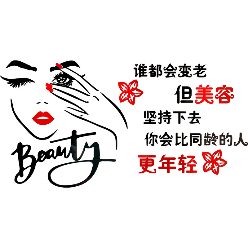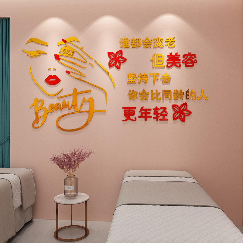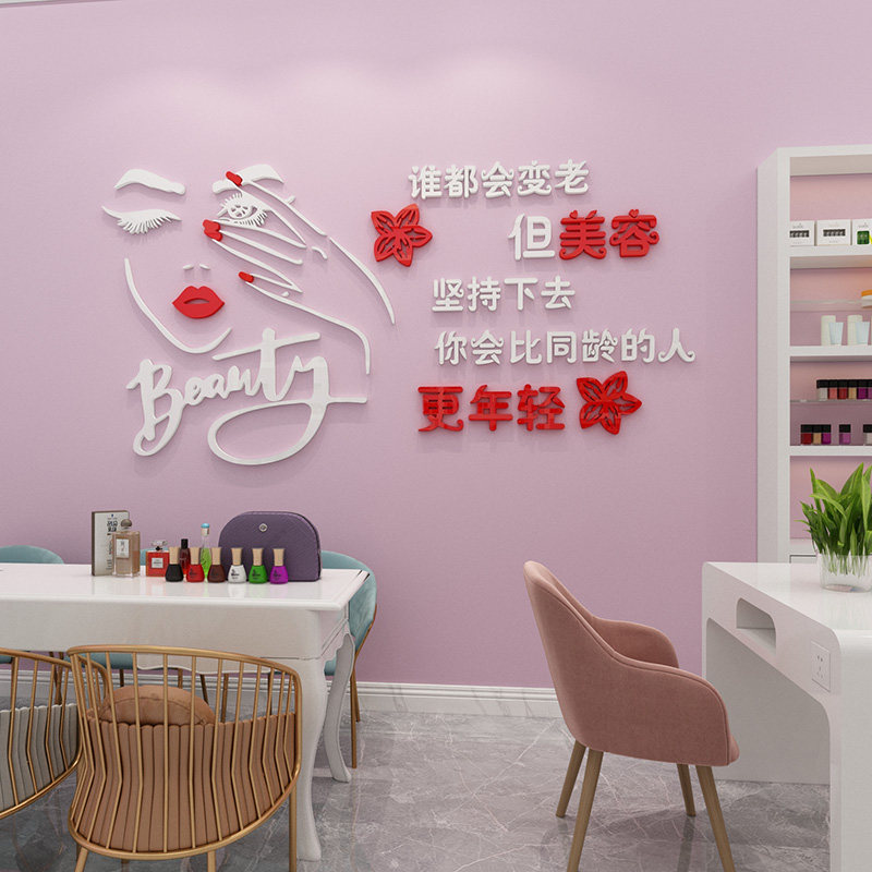 Net red beauty salon glass door stickers health hall nail shop background wall decoration 3d three-dimensional wall stickers