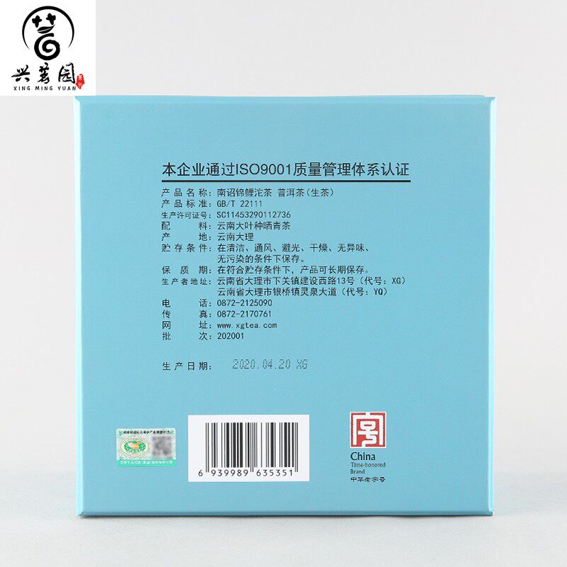 2020 Xiaguan Nanzhao Koi Tuo Tea 365g Tuo Box Gift Box Yunnan Pu'er Tea Raw Tea