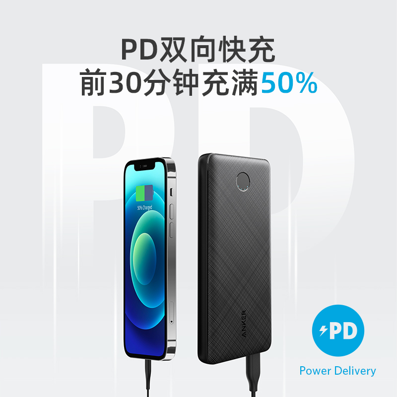 Anker Anker 20000 mAh large capacity mobile charging 20W PD fast charging action power supply ultra-thin portable application Apple 12 mobile phone Android Xiaomi outdoor power supply
