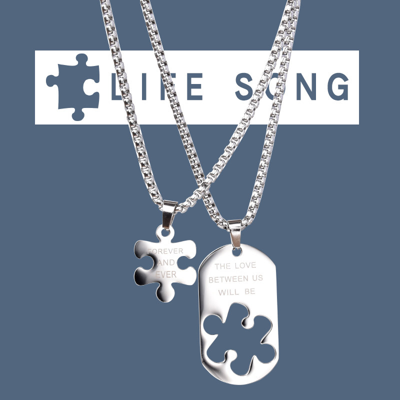 Couple jigsaw puzzle sweater titanium steel necklace adornment trendy brand jewelry hip-hop chain student street dance personality wear fashion chain
