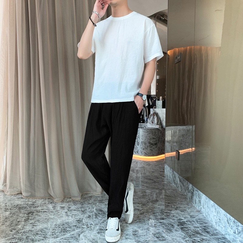 Sports suit men 2021 summer T - shirt thin loose long pants leisure Chinese style two - piece set