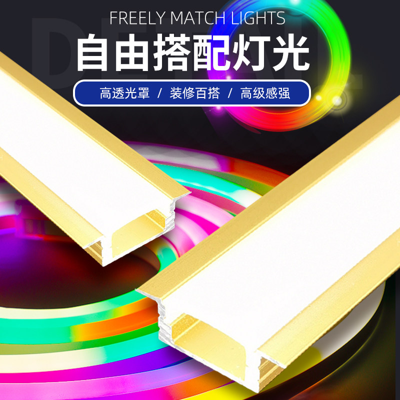 Gold LED light trough U-shaped embedded concealed line light living room aisle line light custom aluminum trough light with card slot