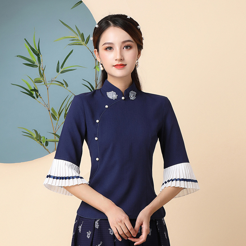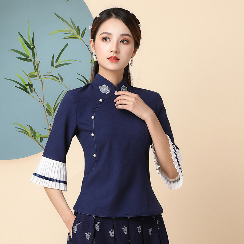 Republic of China wind solid color bamboo cotton cheongsam jacket embroidered 2020 spring and autumn new seven-point sleeve slim retro Chinese style