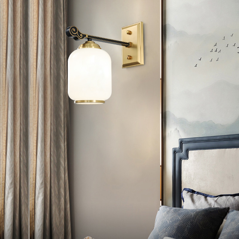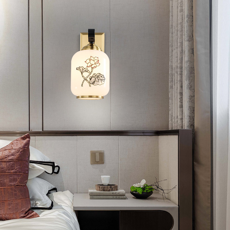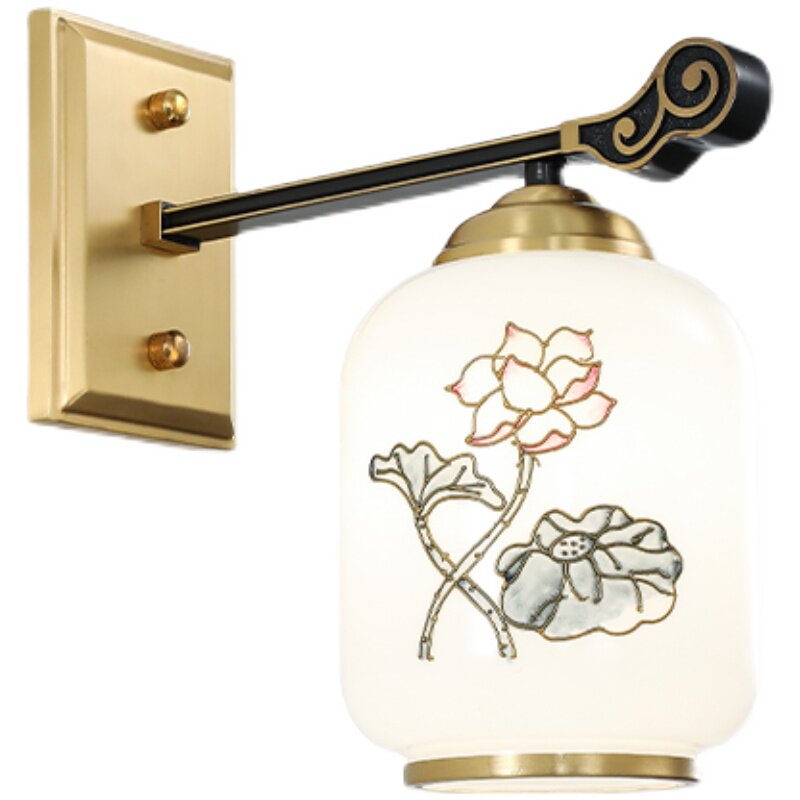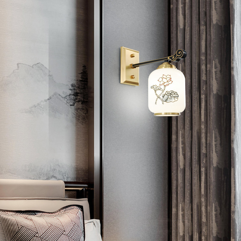 Full copper enamel color New Chinese style wall lamp Bedroom headlights Brief about China Wind Hotel Living room background wall lamp