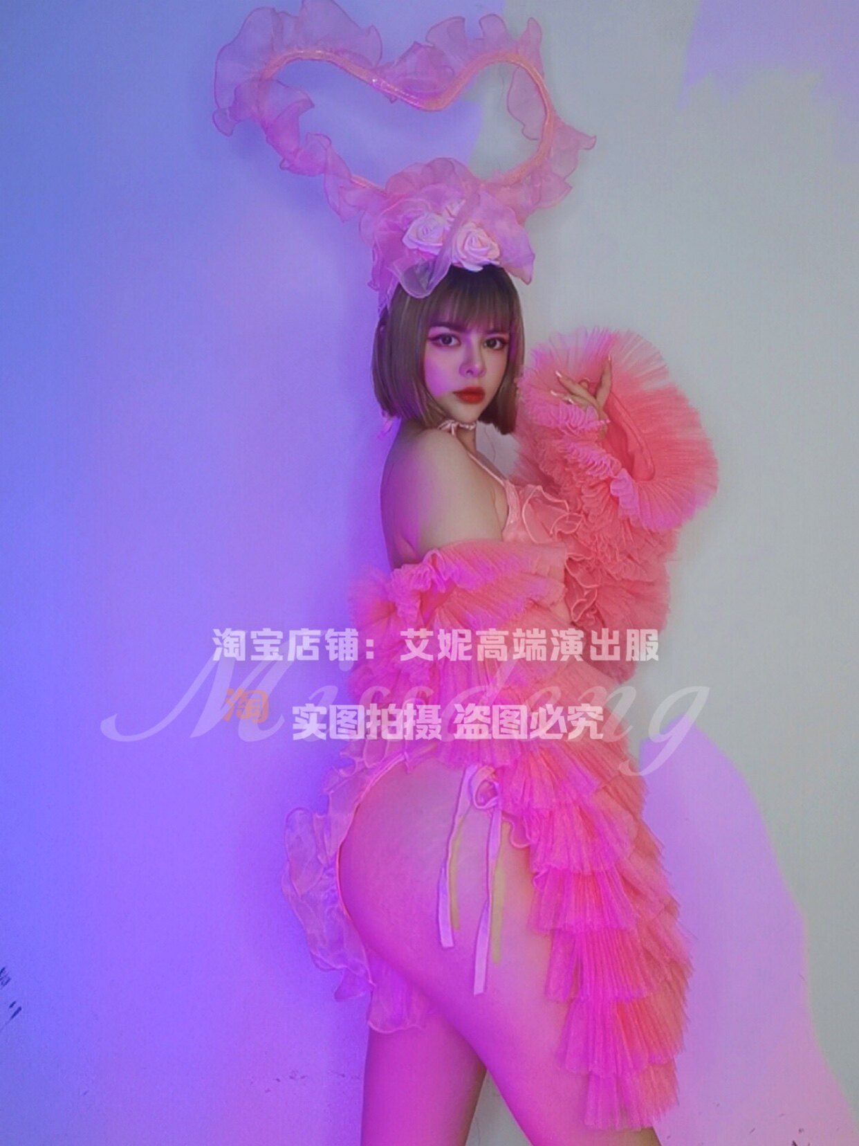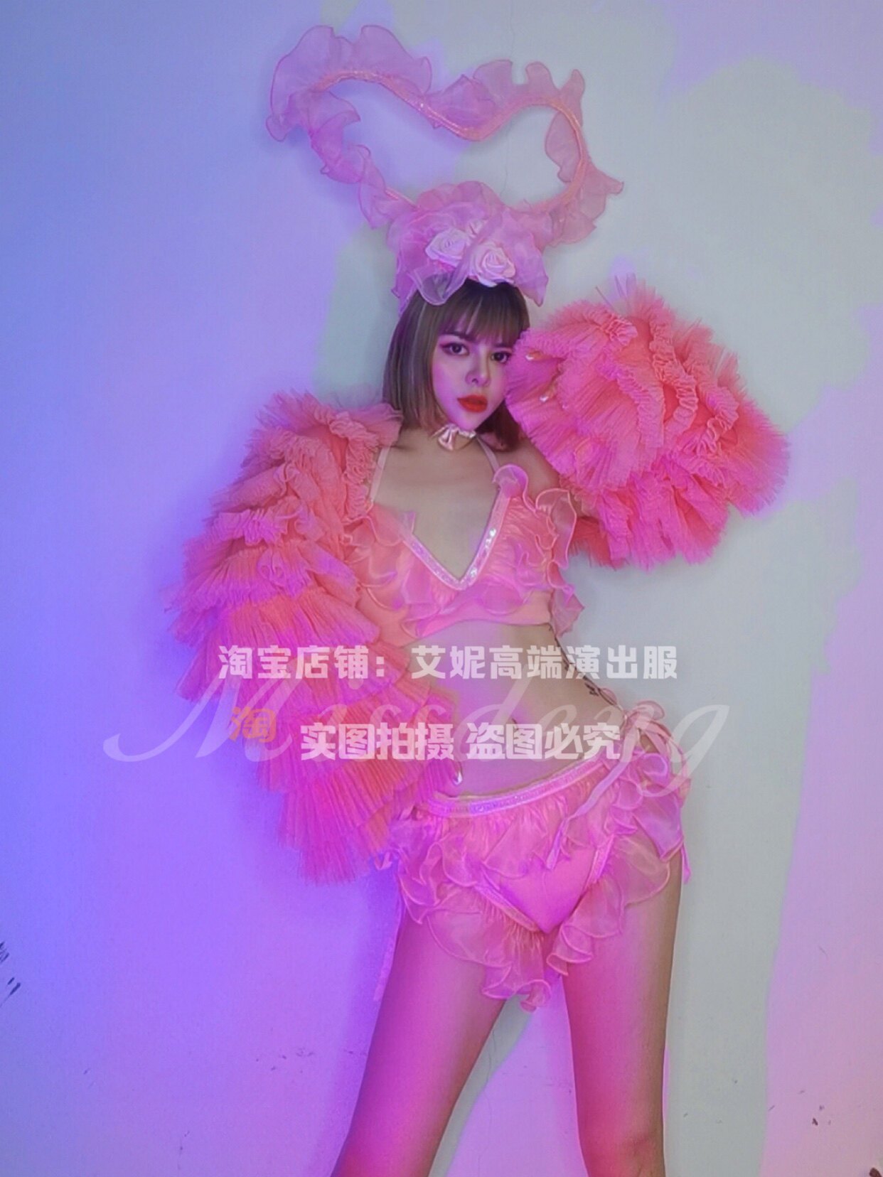 TT High-end Nightclub Bar Singer Djds Dance Team Gogo Valentine's Day Powder Loving Head Accessories Bikini Suit