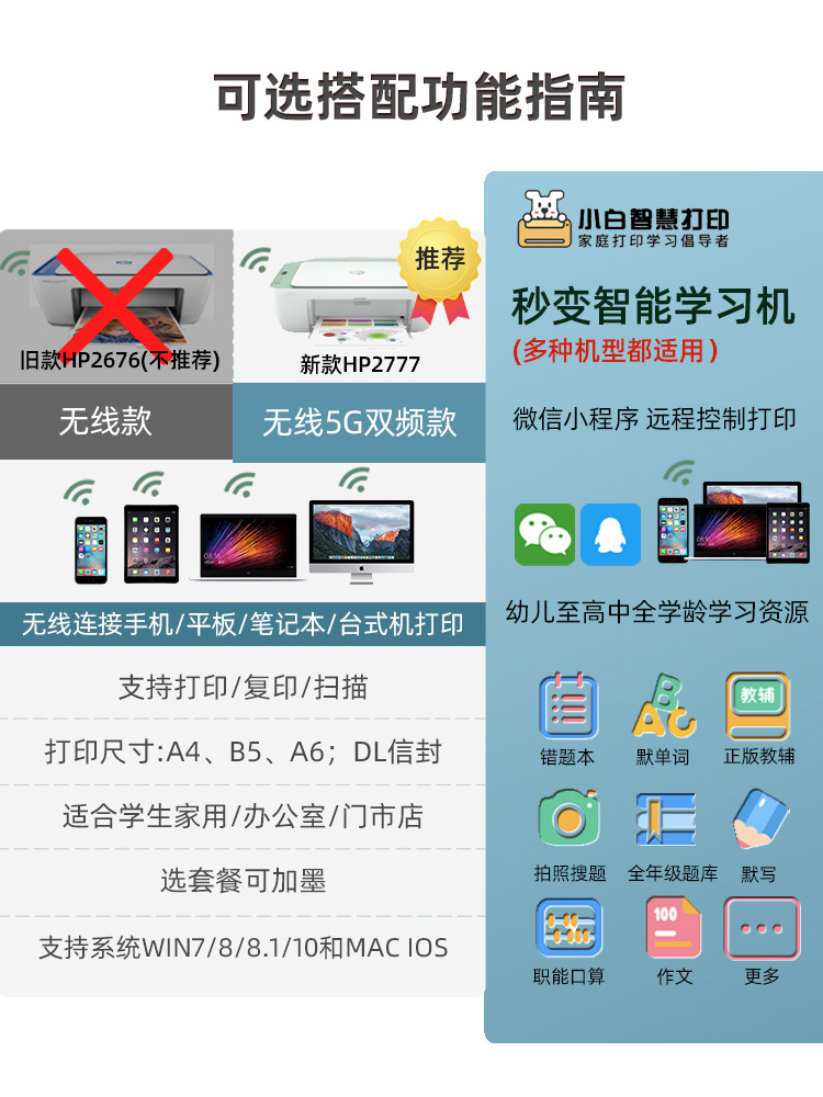 DJ2777 Liu Tao live recommendation (mobile phone wireless 5G dual band)package 23 can be recycled plus ink DJ2777 new wireless white learning stick (remote printing intelligent learning machine)