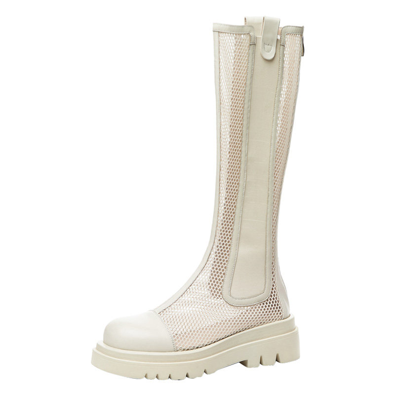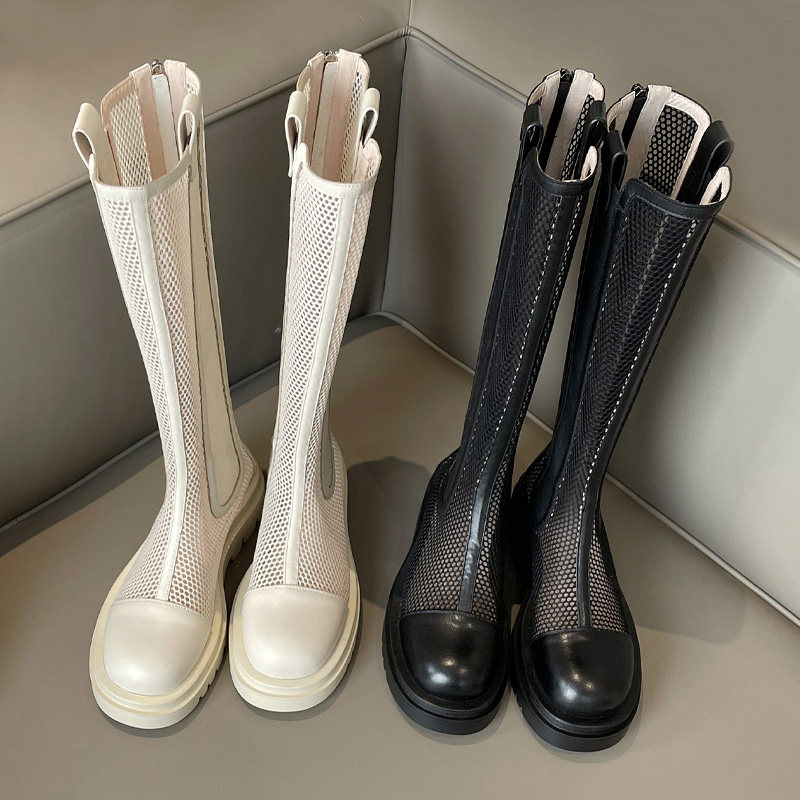 Hollowed-out High Silo Boots Thick Base Cool Boots White Long Boots Woman Summer Thin Chelsea Martin Boot Long Mesh Netting Shoes