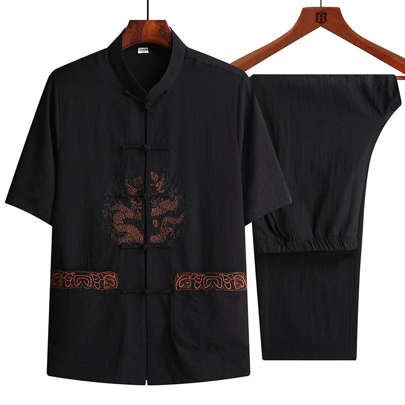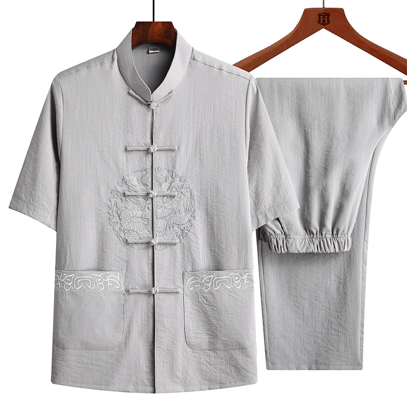 Tang suit men's middle-aged and elderly father's summer dress grandpa's dress 60 70 80-year-old Chinese-style elderly summer loose short-sleeved suit