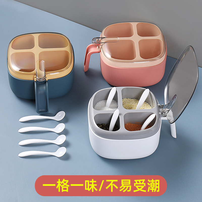 Seasoning box combination set household kitchen supplies salt sugar monosodium glutamate four-grid storage one multi-grid seasoning tank oil pot