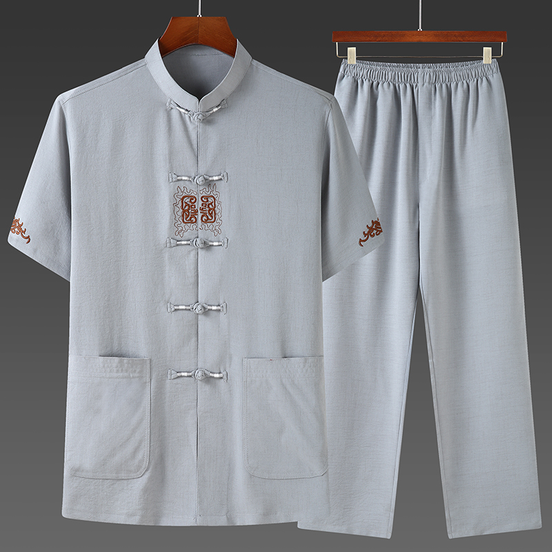 Grandpa Summer Loaded with male elderly 60 70 80 80 old Summer short sleeve suit Dad loose large size Chinese clothes