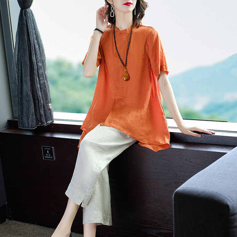 2022 new women's dress summer clothing your lady's mother linen suit high-end foreign pie cotton linen two sets of slim fit