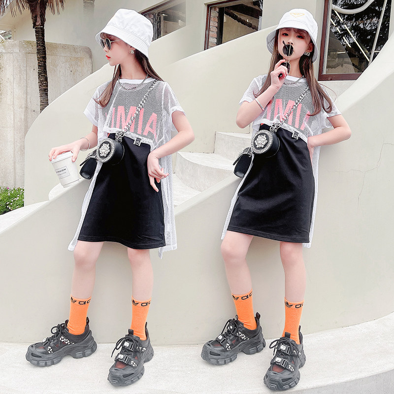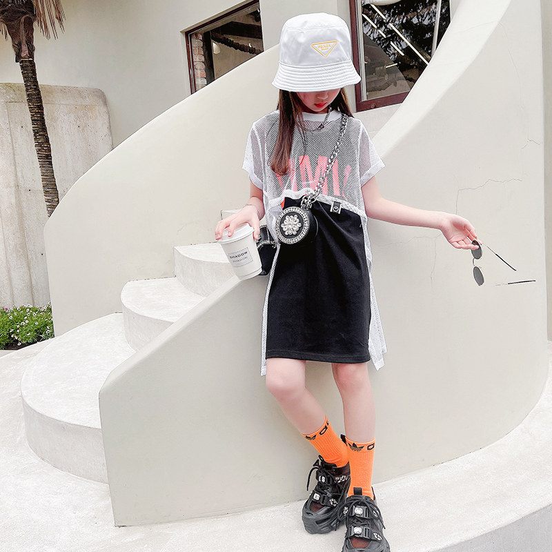 Girl's medium long version blouses in summer clothing 2022 new children Han's version of the summer CUHK Tong vest T-shirt Skirt Tide