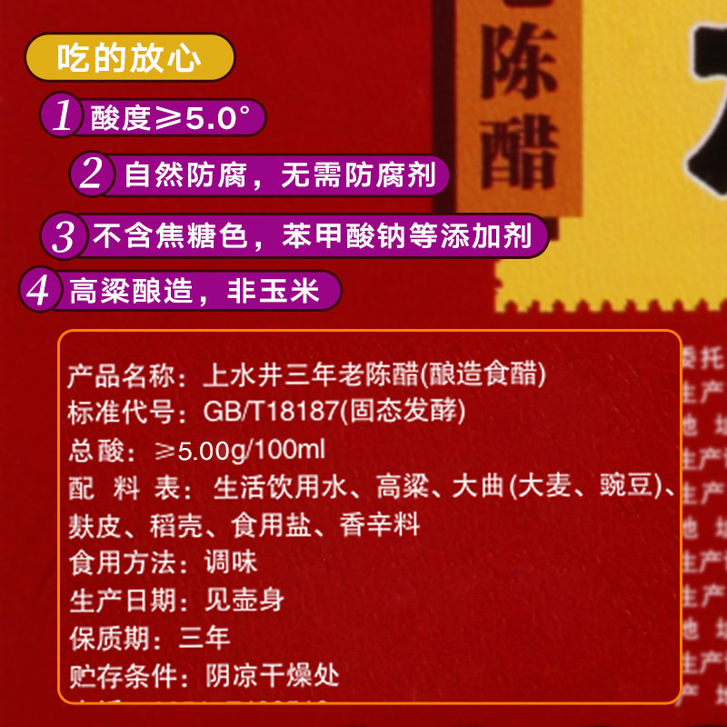 Ninghua Fu Upper Well Old Chen Vinegar 2350ml Solid State Fermentation Without Additives 5 Degrees Authentic Shanxi Old Chen Vinegar
