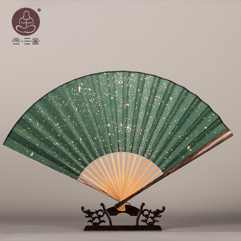 Hesanshe brown bamboo folding fan 95 inches 18 square Chinese style rice paper sprinkled gold blank carry-on high-grade fan to play with inscriptions