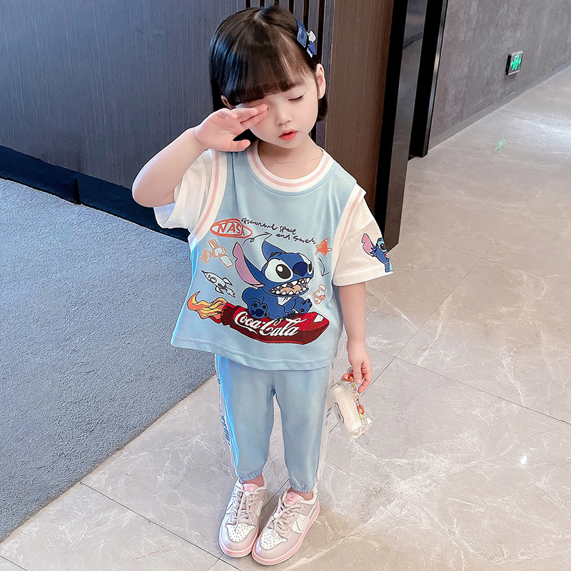 High-end girl's summer suit 2022 new foreign-style children short sleeve little girl clothes sports casual two-piece style
