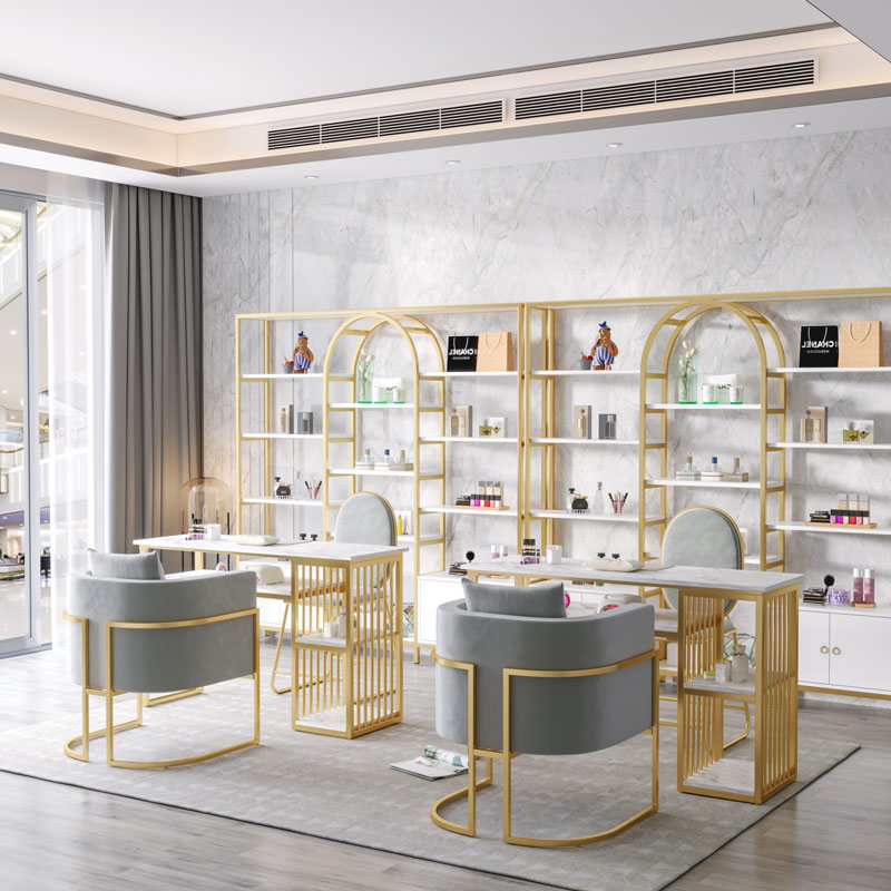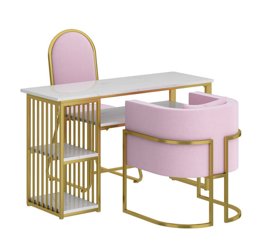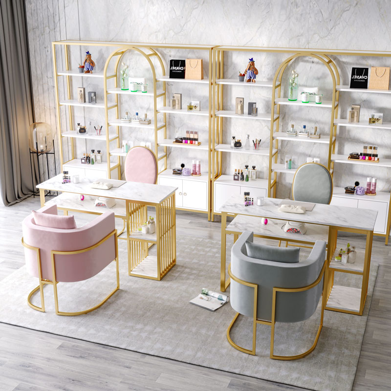 Modern minimal nail double marble nail tables and chairs suit single double gold iron makeup table