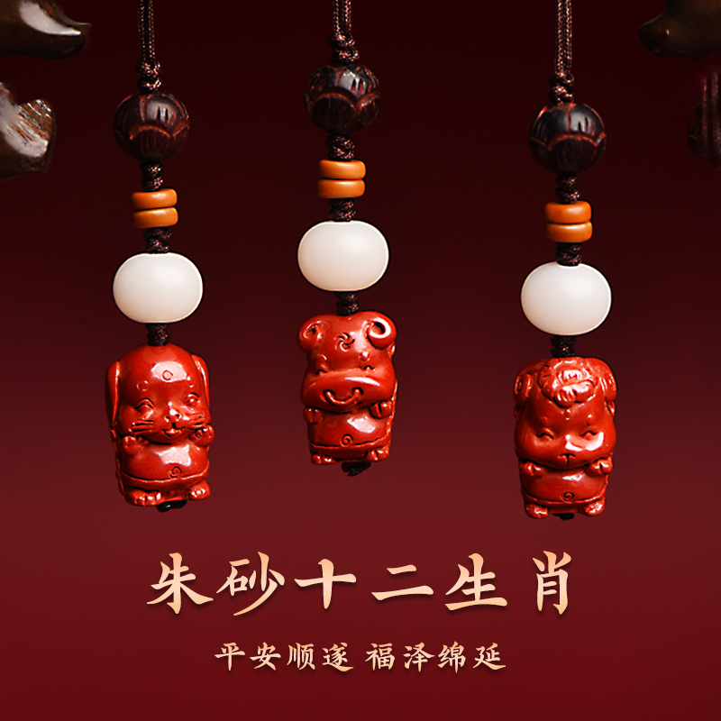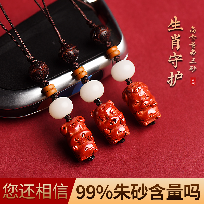 Zhu Sands Official Flagship Store Zhu Sand Raw Stone Zodiac Zodiac Mobile Phone Chain Male And Female Personality Ancient Wind Pendant Car Key Buckle-Taobao