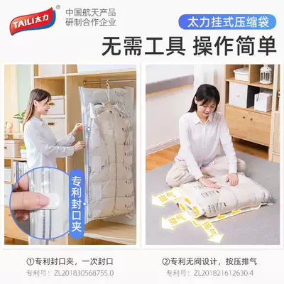 Taili hanging compression bag, free suction, vacuum hanging clothes bag, coat, jacket, cotton clothes, wardrobe storage artifact