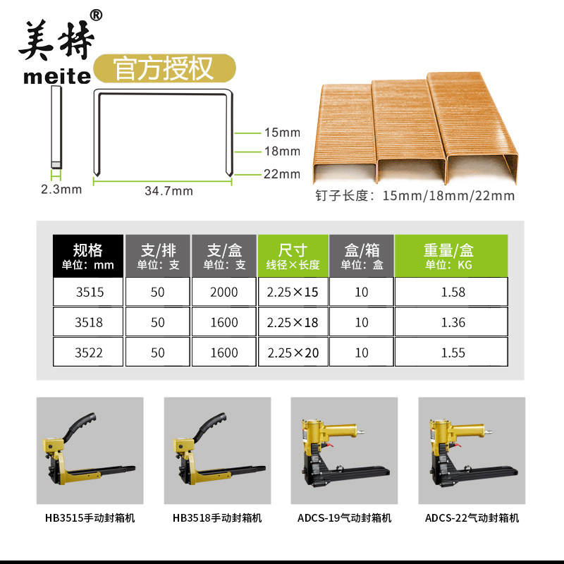 Mette Original Factory National Standard 3518 Box Nails 3515 3522 Corrugated Paper Manual Pneumatic Sealing Case Machine Packing Nails