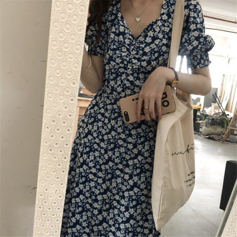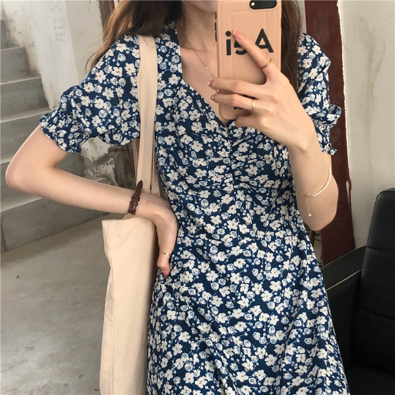 Blue long version (harbor taste vintage chic collection waist art senior sense first love tea hysteria shape clear pure light cooked sweet and beautiful little sub summer dress mix)