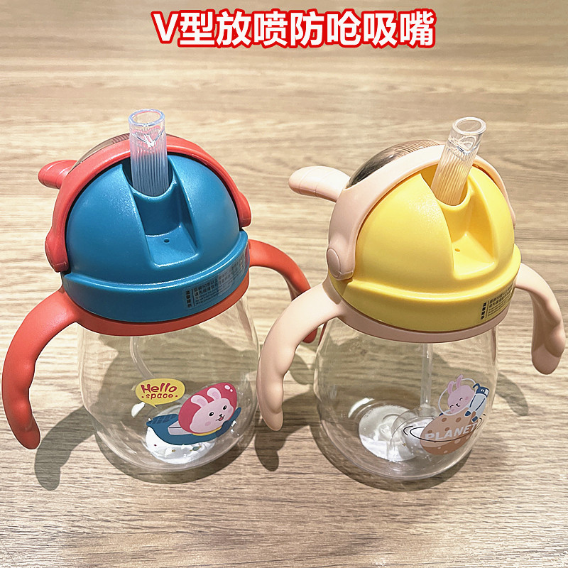 Baby school Drinking cup baby bottle Children plastic water glasses Primary pupils Portable Straw Cup Kindergarten Adorable Cups