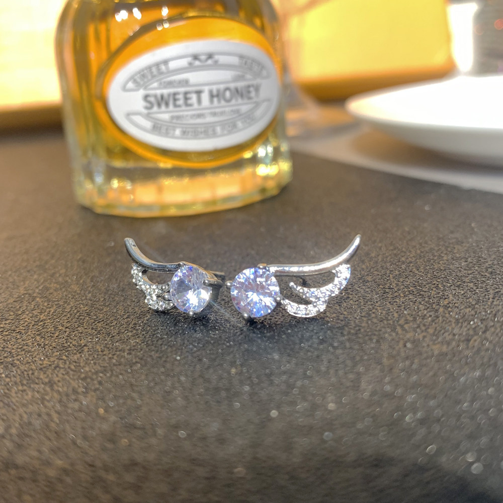 Marry Angel Wings 1 0Ct Main Diamond Ear Pin Feather Wing Plated PT950 Platinum Simple, Small and Exquisite Earrings