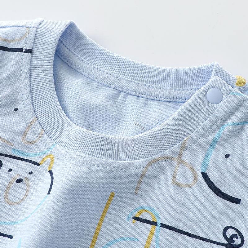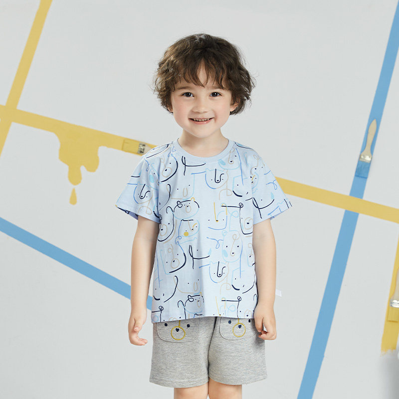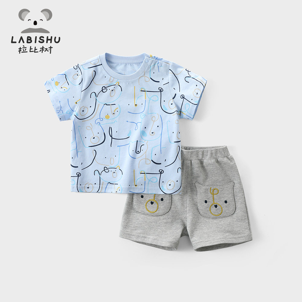Rabi tree children's clothing boys summer clothes 2021 new boys casual suit loose children's cartoon T-shirt two-piece set