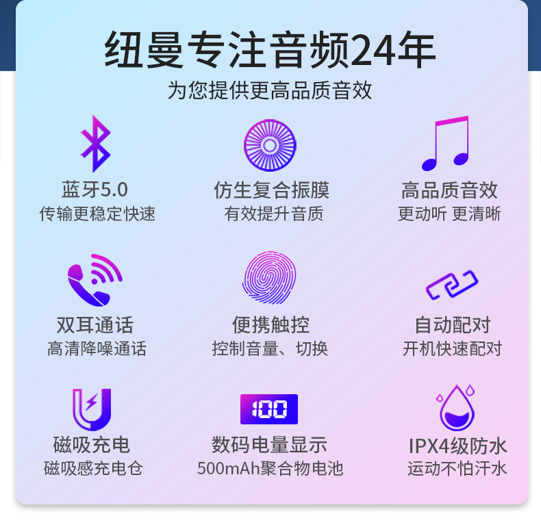 Newmine Newman A20 True Wireless Bluetooth Headphone Sport Waterproof Bluetooth for Apple Android Noise Reduction