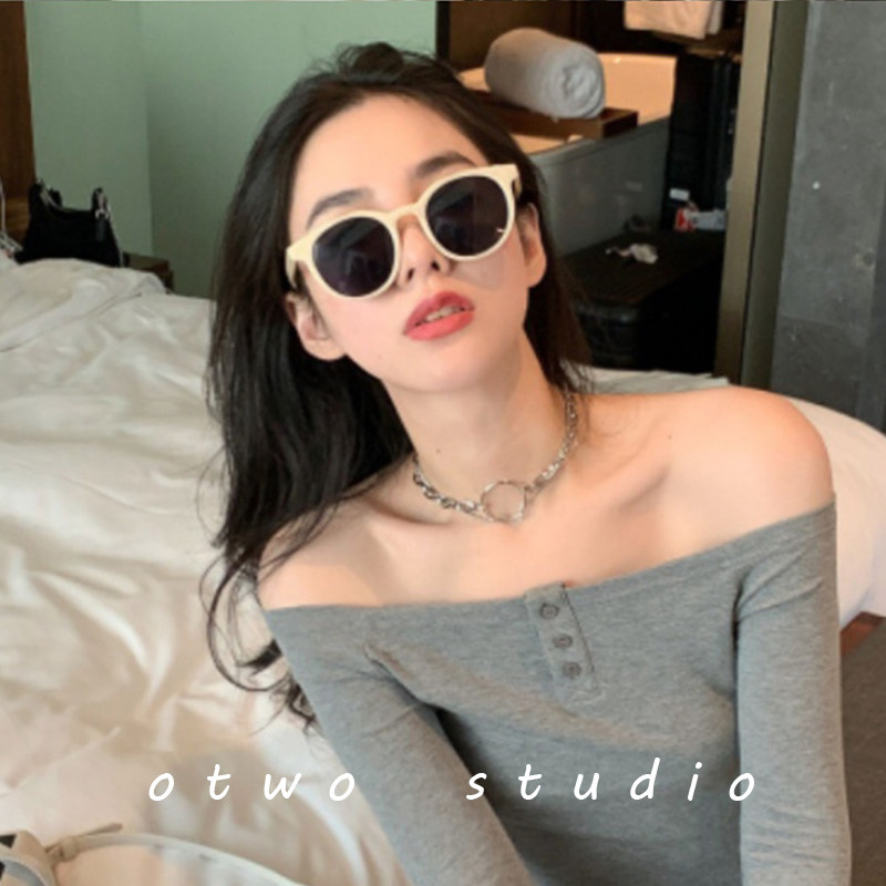 White small frame net red sunglasses female ins street shot small face sunglasses summer 2021 new retro Korean version tide