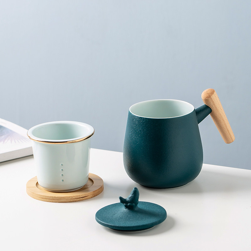 Frosted tea water separation cup wooden handle office cup creative cup cup with filtered ceramic mug custom