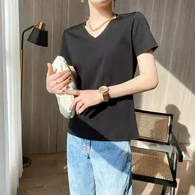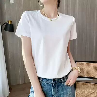80 double-sided mercerized Xinjiang cotton short-sleeved t-shirt women's summer new pure cotton solid color loose round neck half-sleeved top