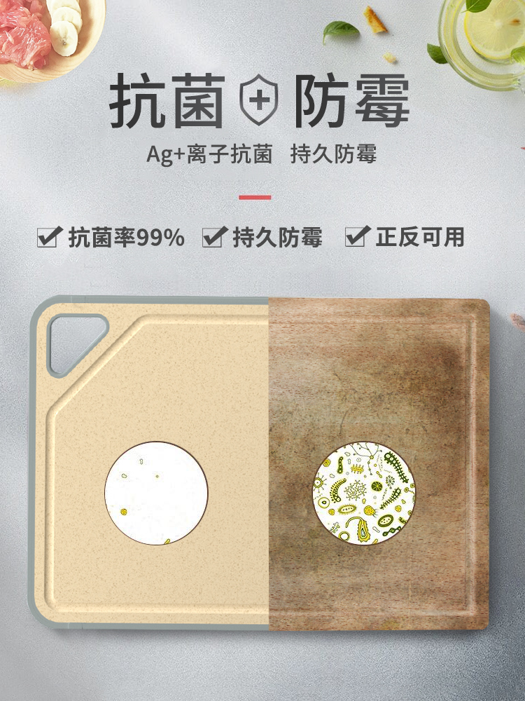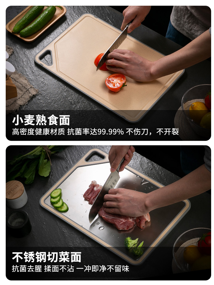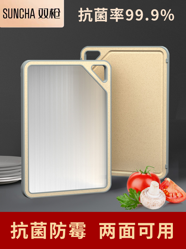 Double Lance 304 Stainless Steel Antibacterial Chopping Block Household Mildew Wheat Straw Bifacial Case Plate Thickened Cut Cutting Board Panel